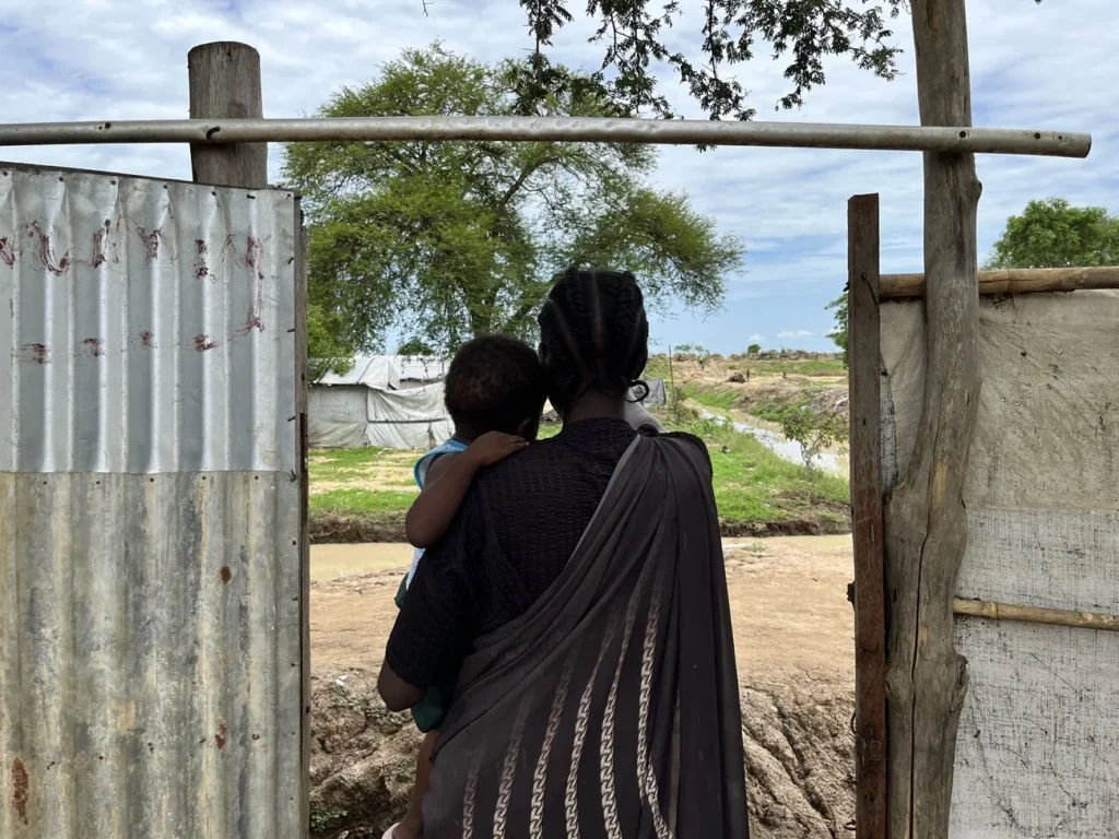A survivor of conflict-related sexual violence and her child at the internally displaced persons (IDP) camp in Bor. South Sudan, May 2025. Federico Borre.