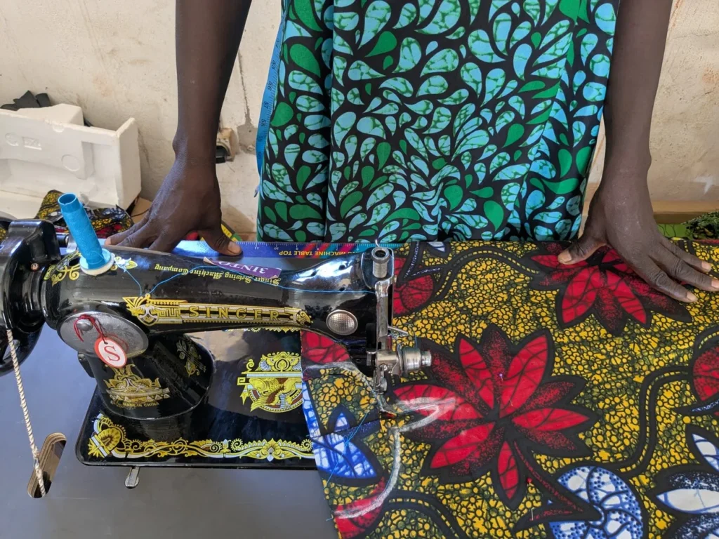 Survivors during their sewing class as part of the interim reparative measures project in Dékoa, Central African Republic. September 2025. Karine Bonneau / GSF