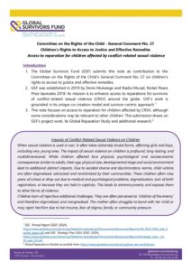 Committee on the Rights of the Child - General Comment No. 27 Children’s Rights to Access to Justice and Effective Remedies Access to reparation for children affected by conflict -related sexual violence Introduction 1. The Global Survivors Fund (GSF) submits this note as contribution to the Committee on the Rights…