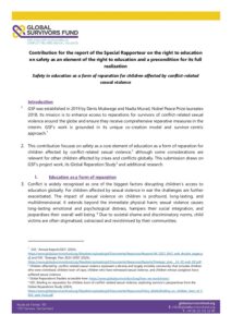 Contribution for the report of the Special Rapporteur on the right to education on safety as an element of the right to education and a precondition for its full realization Safety in e ducation as a form of reparation for children affected by conflict -related sexual violence Introduction 1. GSF…
