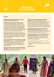APERÇU Registre officiel incluant les survivant.es de violences sexuelles liées aux conflits (VSLC) : Non. Nombre de survivant.es de VSLC couramment cité : Il n’existe pas de chiffre officiel de survivant.es de VSLC en République Centrafricaine (RCA). Cependant, le projet Mapping a documenté 29 801 cas de violences sexuelles entre 2003 et…