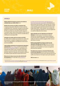 1 Registre officiel incluant les survivant.es de violences sexuelles liées aux conflits (VSLC) : non. Nombre de survivant.es de VSLC couramment cité : il n’existe pas de nombre officiel de survivant.es de VSLC au Mali depuis 2012. Cependant, les rapports du Secrétaire général du Conseil de sécurité de l’ONU font état de…