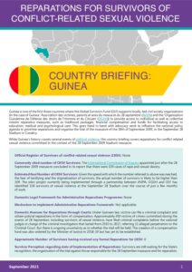 REPARATIONS FOR SURVIVORS OF CONFLICT-RELATED SEXUAL VIOLENCE COUNTRY BRIEFING: GUINEA Official Register of Survivors of conflict-related sexual violence (CRSV ): None Commonly cited number of CRSV Survivors: The International Commission of Inquiry appointed just after the 28 September 2009 massacre concluded in its report that there were 109 cases of…