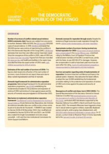 1 Number of survivors of conflict-related sexual violence (CRSV) commonly cited: Figures vary widely from one source to another. Between 1996 and 2010, the UN recorded 200,000 cases of sexual violence. In 2019, REDRESS estimated that 250,000 women were victims of rape during the conflicts in the in the Democratic…