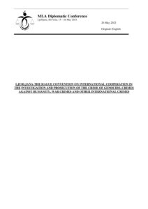 MLA Diplomatic Conference Ljubljana, Slovenia, 15 – 26 May 2023 26 May 2023 Original: English LJUBLJANA -THE HAGUE CONVENTION ON INTERNATIONAL COOPERATION IN TH E INVESTIGATION AND PROSECUTION OF THE CRIME OF GENOCIDE, CRIMES AGAINST HUMANITY, WAR CRIMES AND OTHER INTERNATIONAL CRIMES 2 Table of Contents PREAMBLE ................................ ................................ ................................…